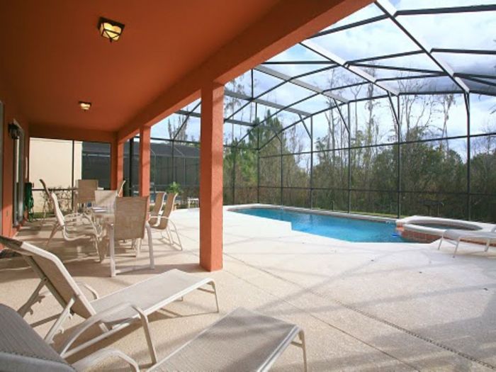Located near Disney, this modern 1400 square foot bungalow holds all the amenities that you would expect to have a wonderful relaxing vacation. This three bedroom villa features a master bedroom with a King sized bed that has a sliding door out to the outdoor kidney shaped pool, which has a full patio set and barbecue. In addition, the second bedroom has a Queen sized bed and the last bedroom has two single beds. This open concept bungalow has a large living spaces, complete with a pull out sofa bed, full Internet connection (PC), sound system, VCR, DVD, and 2 Satellite TVs with America's best