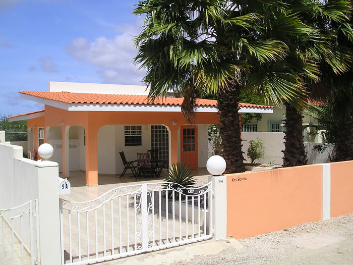Fully furnished detached bungalow four persons on 350 square meter tropical garden. At "Park Exclusive" bungalow park with swimming pool at Kaya Carlos Nicolaas. The house features multiple 220 volt sockets has a spacious terrace with garden furniture. On-site parking available. A spacious living room with open kitchen. Kitchen (with ceiling fan) includes water heater, oven, microwave and American fridge. Complete with crockery and cutlery set for 6 persons, range pans, coffee machine etc. The living room has a stereo and lounge chairs Two spacious bedrooms with fitted wardrobes