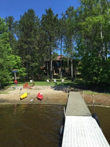 On the waters edge of Dixon Lake In the Chippewa National Forest. This unique place has elegance and rusticity uniquely blended way. The Guesthouse features 525 square feet of modern space with knotty Alder and great views. This is an open loft on the 2nd level with a 3/4 bath, full kitchen, queen, single and double bed. The living space has a lounge couch and small dining set. Just out side is a garden courtyard for dining and lake viewing.