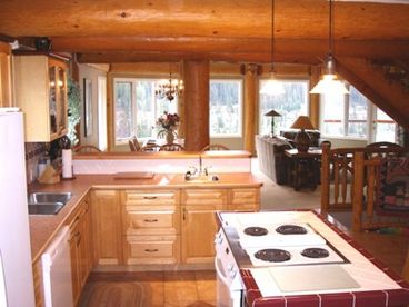 SKi in SKi out at its best! Log post and beam, The main unit consists of 3brms plus loft, sleeps 8 adults or 10 including children. For larger groups add adjoining 2 bedroom ground floor suite to make 5 bedrooms/loft. .Outdoor 7-8 person hot tub. Location perfect for everyone. Watch the kids ski home on the connector run or blast down Blazer to your back door. We sit on the edge of the runs.Walk out the door to connector and ski to main lift.. Luxury accommodation with Panoramic views of ski hill and nearby golf course. Main unit is 2500 sq ft , open plan with a large breakfast