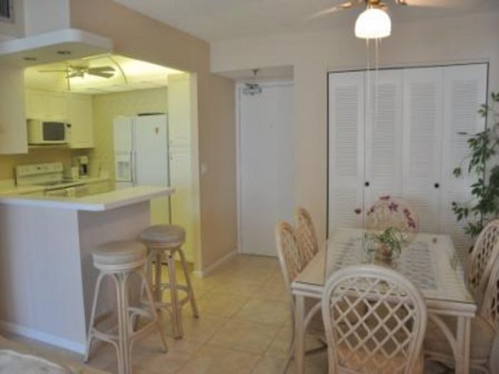 Lovely two bedroom two bath condominium decorated in light and bright colors. King bed in the master bedroom and twin beds in the guest bedroom. Great views of Marco Island, pool and the beach from each room. Relax on the balcony while watching the birds and dolphins play. Steps away from the beach. This lovely condo also offers a workout facility, pool, tennis courts and it is close to restaurants and shops.