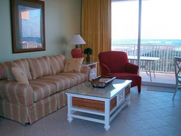 Beautiful, Second-Floor, Two Bedroom with enclosed bunkroom Condominium located in Destin West Beach and Bay Resort--one of only ten end units that directly face the Gulf with no obstructed views from the Balcony area. If family is important, this unit is perfect for you. Sit on the Balcony and see the kids at the pool deck or on the beach. Our unit is a spacious three-bedroom/ two-bath unit with Queen-sized sleeper sofa that sleeps nine with a "Superior" rating. Enjoy the views of the Emarald coast waters and white sand beaches and beautiful sunsets from your own Balcony area. Relax in the huge, 5000 square-foot pool/deck area or hot tub or kiddie wading pool. Destin West Gulfside also has a state-of-the-art exercise room available to its guests. All amenities are included in your stay. Check our availability calendar for open dates, and call us even if your date is booked. We have access to many other units on-site through our network with other condo owners. All guests at our unit in Destin West Gulfside have access to the new Destin West Bayside resort's 700-foot Lazy River Lagoon Pool and heated pool area.