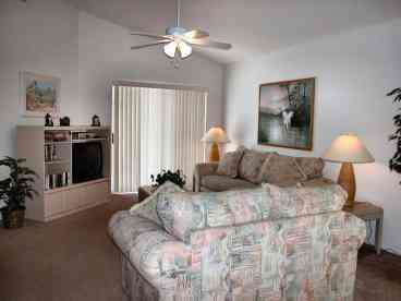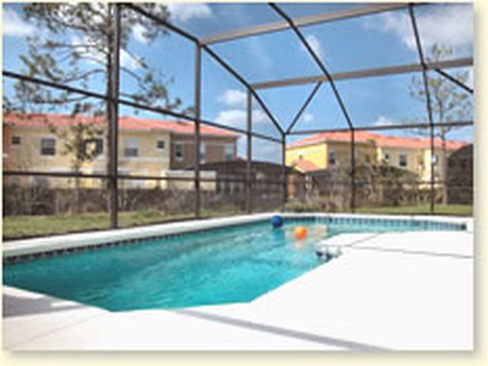 Wonderful Spacious 4 bedroom, 3 bathroom villa complete with south facing private pool. Stay on the prestigious 24 hour gated community resort set 15 mins from the theme parks fantastic location for family holidays and reunions ideal accomodation for up to two families. TV in all bedrooms 2 ensuites Perfectly postioned for access to all the major attractions including some of Florida finest golf courses (nearest course 5 minutes), shopping malls and variety of restaurants. Not to mention helicopter rides, and flea markets. There are 2 en suites one with shower and bath the other with a large walk in shower. Both en suites have queen size beds and comfortable surroundings. Two twin bedrooms share the third bathroom which also has a bath and shower. There is play station 2 with a slection of games to amuse the young! All bedrooms have a 22 inch TV. There is a large living area complete with Cable TV (with over 70 channels), dvd and vcr machine small selection of films are available. Comfortable sofa chairs plus dining table and chairs complete with ceiling fan. The living room overlooks the pool and patio area. The pool is screened to enjoy the added comforts of sitting out during the evening. The pool area has a patio deck and sun lounges there is also an area which provides shade and shelter. Keeping an eye on the children could not be easier as you have great views of the pool from the family room and nook. The pool can be heated for an additional charge of £70 $130 this may be needed for bookings between the months of October and May when the weather is slightly cooler. FREE High Speed wireless internet service You will find all the towels and bed linen included. There is a seperate laundry room with washing machine and a tumble drier. The villa comes supplied with a cot and high chair (you will have to supply your own cot linen). As the villa is single storey there are no staircases to trouble senior citizens or families with young children. The resort is situated at Lake Berkley, this is a first class resort with wonderful facilities for the residents and guests to enjoy including Gym, Jaccuzi, Internet room, Children's playground, nature trail,Gazebo Lake with sandy beach, tennis, pool table communal pool FREE WELCOME PACK OF TEA & COFFEE FREE LOCAL TELEPHONE CALLS
