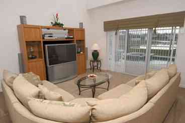 You will feel it the moment you pass the entry gates to this beautiful new community - Cumbrian Lakes. The sense of peace and harmony with nature. Pleasing streetscapes are lined with ancient oak tree preserves. This executive family home is brand new for Summer 2004. It offers 2500 square ft of fully air conditioned flexible living space, 5 large double bedrooms including 3 master suites - 2 spacious sitting areas - 2 dining areas and a pool and jacuzzi which is fully screened and has a poolside shower. There is a fully air conditioned games room. The pool and jacuzzi can be heated. The villa has luxury equipment including a home cinema / PC Broadband access / HDTV and 2 Playstation 2's. The games room has pool - foosball and table hockey. The villa is ideally situated for access to many golf courses including Greg Norman's Champions Gate. There is a no smoking permitted within the villa. The large family room overlooks the pool and beyond over the natural lake. It is furnished to the same high standard throughout. You will find comfortable sofas to relax in while watching our 51” Sony HDTV Home Cinema with a good selection of DVD's and CD's. This large room has patio doors leading to the pool and jacuzzi. The family room is overlooked by the open balcony and the high windows give added light. The large open plan lounge is an ideal room to relax and unwind in the evenings. There is a top of the range PC with free internet broadband access in loft area. The well appointed kitchen is fully fitted with all appliances you are likely to need - including a full size electric cooker - microwave - dishwasher and a large fridge and freezer with ice maker. The breakfast area is a café style area adjacent to the kitchen and is bright and spacious and includes both a breakfast bar and a table with four chairs. There is formal dining for six in this open plan dining area. All the master bedrooms have en-suite bathrooms. The 1st Master Bedroom has a king size double bed and its own private and spacious en-suite bathroom. A 25" cable television is installed. There is also a large walk-in wardrobe. The 2nd Master Bedroom is equipped with its own luxurious bathroom and a queen size bed. For your entertainment there is a 14" TV. The 3rd Master Bedroom is also furnished to a high standard with a queen size bed and luxury bathroom. All bedrooms have ample drawer and wardrobe space. For your entertainment this room is equipped with a 14"