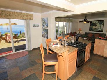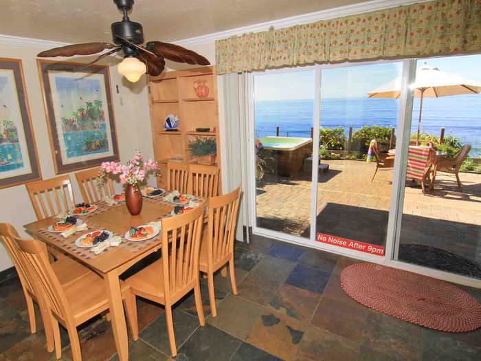This charming Beachfront Rental is sitting on the edge of the Pacific Ocean, located in beautiful North County San Diego where the weather is mild all year long. This gorgeous rental is fully furnished and professionally decorated, with every necessary amenity. Take a second and imagine what your beach vacation could be like…. Wake up to the sound of the ocean. Cook a delicious breakfast in your kitchen with your entire family, wander outside and eat it as you gaze out to the sea. After breakfast, plan to be at the beach all day for a day of sun, surf, play, and most of all relaxation. The beaches in San Diego are nothing short of spectacular, with wide sandy beaches and gorgeous waters year round. After a day at the beach, take stroll. Wander down to Leucadia where you will find quaint boutiques, mouth watering Mexican food, and local coffee houses, among many other places, all which are reminiscent to the classic beach city feel. Many choose to cook their meals at the vacation rental….life doesn’t get much better than having your close friends and family around, enjoying a glass of wine, preparing a scrumptious meal as you watch the sun go down on the horizon of the Pacific Ocean. Fall asleep to the sound of the lulling waves, wake up and do it again. Perhaps one day you stroll down to the farmers market, or the seaside bazaar, North County’s only flea market. At night, you may enjoy Calypso café, a small restaurant serving up great food with local bands playing every night. Or maybe you would enjoy Bar Leucadian, a neighborhood bar that has been there since 1946, and has live music, pool tables, and no cover. This vacation rental is a home away from home. You will not feel like you are in a hotel room. Each room has character, and everything is professionally decorated. You will find everything you need right in the rental, from beach towels to linens, from spices to coffee grinders and garlic presses. We have stocked the kitchens keeping in mind you might be cooking a Thanksgiving feast. Just imagine all of the memories that will be made on your vacat