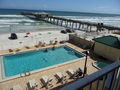 Large Direct Ocean Front luxury Two Bedroom / Two bath condominium located on the beach next to the famous Sunglow Pier, in the quieter section of Daytona Beach in Daytona Beach Shores. The condominium boasts two sliding glass doors, one in the living room and one in the master bedroom for your direct ocean front viewing pleasure. The private balcony on the third floor gives you the feeling that you can touch the beach while you watch the pelicans, surfers and dolphins go by. The unit offers split bedrooms, one with a King sized bed and the other with twin beds along with two full sized bathrooms which allow for maximum privacy. There is also a queen sized sofa bed as well as the spacious living area and full sized kitchen. Three flat screen TV’s, plenty of closet space and ceiling fans throughout the unit give you the ability to call this home. The unit is a genuine luxury condominium that will provide you and or your family with a maximum amount of personal space and casual comfort that you would expect to experience during your stay. The outdoor pool deck offers a heated swimming pool along with a jacuzzi and common picnic area that even has a charcoal grill for those evenings that you would enjoy a family cookout! Our location allows you to relax, swim in the pool, sit in the jacuzzi, take a walk or ride on the beach, fish out on the pier or eat at Crabby Joe's while enjoying the ocean atmosphere. Public transportation is available at your doorstep so you can explore the Main Street Pier area or the Ponce Inlet Lighthouse area. Both adventures are only 4-5 miles immediately North or South of our centralized location. We are also conveniently located within approximately 60-75 minutes of Cape Kennedy Space Center, Walt Disney World, MGM Studios, Sea World, Universal Studios, Orlando's outlet malls and historic St. Augustine. If you are looking for a relaxing vacation or family fun, you will enjoy staying in our newly updated condo. Check us out..........the value can't be beat! Sunglow Resort 3647 South Atlantic Avenue Unit #302 Daytona Beach Shores, Fla. 32127