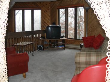 Year round enjoyment in our Cozy Chalet located in gated community of Saw Creek Estates, Bushkill, PA just minutes away from hiking and taking in the beauty of Bushkill Falls. This completely renovated home has three bedrooms, two bathrooms with entertainment/sleeping loft and offers beautiful views and a relaxed atmosphere. Comfortably sleeps two to 12 guests: one queen bed in master bedroom, four full beds in two guest bedrooms and a queen sofa-bed in the loft. Master suite welcomes you to a big spacious bedroom with private balcony to a beautiful forest view, Jacuzzi for two to four, private dress room with huge closet and lavatory, private bathroom with full bath. Spend some time enjoying nature on the large deck out front or sit and enjoy some quiet time in the screened porch area. If you feel like reading a book or play piano – another room on second floor is waiting for you. A comfortable swing for two in the deck makes you feel very special when you are next to your significant one. During the winter months you can relax in front of the state-of-the-art marble fireplace. Or, if you prefer, jump into a Jacuzzi for relaxation and start the candles. There are plenty of games and movies or music in the house to enjoy. If you are a party-oriented person, you can find our deck a very big and nice place for a barbeque, outside dining and relaxing in a double swing. A fancy gas grill is always clean and full of gas. Want to get your kids busy while you are partying? Have them play on the computer. Fast-speed DSL line will make them surf the Internet or chat with their friends all evening long. All well-maintained appliances, carpets, kitchen, baths and more are just some of the reasons to come and enjoy a week or weekend! Full kitchen includes - microwave, dishwasher, refrigerator, toaster, coffeemaker, electric kettle, juice maker, food processor, cooking utensils, dishes, spices. Bedrooms - bed linens, pillows and blankets - all included. Brand New Washer and dryer. Gas grill on deck, table, chairs and umbrella (seasonal). Swing for two on a deck. YOUR FAMILY WILL WANT TO RETURN YEAR AFTER YEAR! Walking distance: -playground -outdoor pool -kids (toddlers) outdoor pool -tennis courts -fishing (license required) Our Guests take advantage of all amenities during stay.
