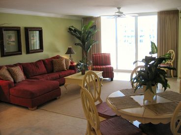 Every effort has been made to make this condo the perfect place for your family vacation! This very spacious condo has over 1560 square feet and is professionally decorated. Three large bedrooms with a bed in every size…1 king, 1 queen, 1 bunk bed: double on bottom and twin on top. The family room sleeper sofa even has another queen bed. The condo also offers 2 full baths, a fully equipped kitchen with granite counter tops, full size laundry room and a very large family room that is open to the kitchen. The large balcony overlooks the 700-foot lazy river, heated waterfall pool and hot tubs and has great views of the Choctawatchee bay. TV and DVD in the family room and each bedroom has its own TV and DVD. The condo is also equipped with High-speed Internet access. Enjoy all the amenities that Destin West Beach and Bay resort has to offer, everything you need for the perfect family vacation. Bring your family to enjoy the sunset over the emerald cost with the sounds of the surf from the private balcony. You have less than a minute walk to the Lazy River or other pools