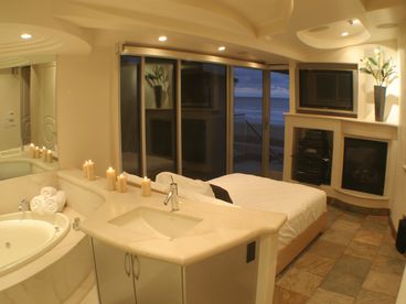 This property at the famous "Surf Rider" is the biggest and most gorgeous. Within the 900 square feet property, you will be able to enjoy three different plasma televisions, 2 fireplaces, granite counters, slate floors, "high end" appliances, washer/dryer, 2 person jetted tub, ocean views from the living room, dining room, kitchen, and master bedroom, and designated parking space. Once you step outside the property you will have access to 2 outdoor barbeques, outdoor Jacuzzi, patio area, shower, foot bath, and sensational sunsets. This property is located 1/2 north of Belmont Park in Mission Beach and always in high demand.
