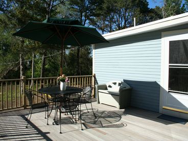 Just listed!! Newly renovated 2br/1ba cottage, nestled on a private 2.5 acre lot. Large yard ideal for outdoor games/sports. Large 15x20 deck perfect for outdoor dining and relaxation. Patio with grill and chiminea for peaceful evening fires. Close to beaches, bike path and Nickerson State Park. Amenities include: full size w/d, new appliances, cable tv, dvd, cd player, beach chairs, games, books, puzzles. One bedroom has a double bed and the other has bunk beds. Living room has a full size futon for additional sleeping. Quilts, blankets and pillows provided. Sheets and towels must be supplied by renter. Available beginning Apri 30th for Saturday-Saturday rental. Many weeks are still available.