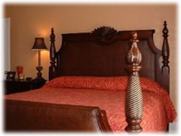 3 Bedroom 3 Bath - Sleeps 8- Shared Pool/ Tennis This beautiful twin villa is located in the desirable Mediterranean style resort of La Valencia located in the West End of Panama City Beach. Professionally decorated in beautiful coastal Key-West décor (Tommy Bahama), featuring 3 bedrooms and 3 baths. Sleeps 8. Has two beautifully decorated MASTER suites and an additional guest room. The larger Master suite has a KING sized bed with adjoining bath and JACUZZI tub with a separate shower alcove. Spacious closet with a mirrored dresser. TV inside armoire. Upper master suite has a gorgeous KING size four-poster bed and a spacious adjoining bath. TV inside armoire and a wonderful Juliet balcony for your viewing pleasure. Lower guest bedroom has a daybed that can be used as two twin beds or converted to a KING bed, also has an adjoining bath. There is also a QUEEN sofa sleeper in great room. First class everywhere. Crown molding and high ceilings throughout. TV with combination VCR/DVD player. Fully equipped kitchen with all the amenities of home. Breakfast bar with stools plus a separate eating area complete with table and chairs. Mini-compact stereo for your listening pleasure. Full-sized washer and dryer for your convenience. Step out onto your PRIVATE PATIO which is great for relaxing or grilling. This beautiful villa is just steps from the Shared LIGHTED TENNIS COURT and there is a shared BEACHSIDE POOL for your enjoyment as well . This wonderful home boasts 3 TV’s with a DVD/VCR combo in the living room. We Rent to Families Only... NO EXCEPTIONS!