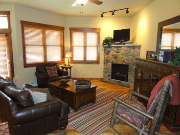 When you visit Steamboat Springs and the Yampa valley, you might hear a few locals talk about the “curse” that makes people leave their jobs and move to this wonderful valley. Well if that curse doesn’t keep you coming back, staying in our luxurious +2,000 sq ft town home will! Located in the Mountain base area off of Mt Werner road, this beautiful brand new town home is less than ½ mile from the base of the Steamboat Ski Resort, which is a short ride on the Free shuttle, a quick 3 minutes when driving by car, or a 5-10 minute walk up the hill! You can also forget about scraping the snow and ice off your windshield by parking your vehicle in our heated garage where there is plenty of room to store your skis and snowboards in the winter or bikes and golf clubs in the Summer. Upon entering our home you will marvel at the attention to detail in everything from the distressed wide-plank wood flooring, to the hand-hewn log railings and warm hues from the custom designed rooms. After you remove your shoes in the slate entryway, hang your coat and store your accessories in one of 8 wood cubbies, you enter the first of 2 living rooms where you will spend your evening discussing the day’s adventures in front of the large rock firepl