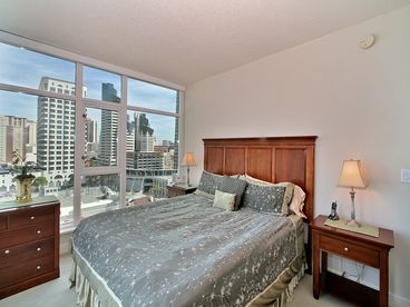Experience luxury living in this gorgeous unit with spectacular views of downtown San Diego and bay! Everything you’ll find here is first class, from the highly appointed suite to the resort-style amenities. This sophisticated condo is beautifully finished with rich cherry hardwood floors, elegant furnishings, granite countertops, gourmet kitchen with stainless steel appliances, fireplace, marble bathrooms and more! Take in impressive 180-degree views of the cityscape and bay from every room through floor-to-ceiling triple-pane windows. Amazing city lights await you at night from the Master Bedroom, while the spacious balcony provides sunshine and bay views throughout the day. Includes HDTV Plasma TV, computer center with printer, wireless internet, CD/DVD player, phone, extended cable services, washer/dryer, central air/heat, and fully stocked for extended stays.