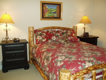 Kintla 404 is a very nice condominium with 3 bedrooms and 3 baths. This corner property has views of the mountain and the valley. The vaulted living room has a comfortable large sofa, TV, and VCR/DVD. One deck has a view of the Mountain, the other a view of the valley. The master bedroom has a king bed with a private gas fireplace with a built in TV and DVD player. The second bedroom is a mission theme with a queen bed and a bathroom. Located in the alcove is a set of log bunk beds. The third bedroom has a queen bed with a built in TV, VCR, DVD, small refrigerator, sink and a coffeemaker. High Speed Internet is available in the property. There is also a stackable washer and dryer. Kintla's common areas are enhanced by wood accents, slate and carpet flooring, and a rustic Montana decor. An elegant desk area and lobby, lounge, outdoor whirlpool, deck, sauna and showers provide residents with in-house comfort and convenience.