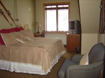 This 2 bedroom/2bath top floor, corner, slope side unit has 1124 square feet and sleeps a maximum of 6 people. The entry way and kitchen have slate floors and black marble counter tops. The counter can seat 2 people, the table can seat 6. The master bedroom has a king bed, 26"TV w/DVD/VHS, and private bath w/ceramic tile. The guest bedroom has a split king bed (converts to 2 twins), a TV, and shared bath. This property has a stackable washer and dryer. High speed internet connection is also located in wall outlets at desk in master bedroom, in guest room, and at dining table. The living room has a TV and DVD player, a queen sleeper sofa, gas fireplace, and slope side view from the deck. The common areas include a two story lobby with large stone fireplace and lounge area. Morning Eagle Lodge guests will have use of a heated, secure underground parking garage and ski locker. An outdoor hot tub is located on the top floor of the lodge to take advantage of the surrounding views. Morning Eagle Lodge guests will have admittance to the only fitness facility located on-mountain.