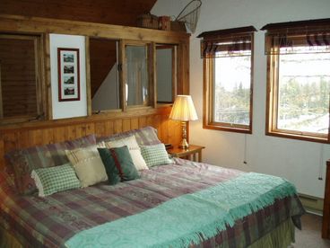 Sherpa is a superior five story, ten property complex located on the Big Mountain road near the entrance to the Whitefish Mountain Resort's main parking lot. Sherpa houses the only indoor, heated swimming pool at the resort. Sherpa 5 has a fully equipped kitchen with all silverware, dishes and cooking utensils provided; this property also added a new dishwasher March '05. All linens are furnished. Sherpa 5 has approximately 1,700 square feet. The loft bedroom has a king bed that can be split into two twin beds. The second bedroom has a queen bed. The master bedroom has a queen bed and a full size futon separated by a privacy wall. The living room has queen hide-a-bed. This beautiful three bedroom, two and one-half bath condominium has been painstakingly decorated with all original artwork as well as antique and handmade quilts. The main floor has a half bath, kitchen, dining, living room and wood fireplace. All firewood is provided. Sherpa 5 has 4 TV's and 3 VCR's. The owners have provided a VHS tape library for use in this property. Upstairs the loft bedroom has a ceiling fan and a king bed. This room is decorated with hanging stain-glass windows and vintage Glacier National Park postcards. Down the hallway on the upper level are both full bathrooms, each with a tub/shower combination, and a second bedroom. This bedroom is decorated with a Western Cowboy theme. The master bedroom is dedorated with a handmade quilt and snowshoes. The laundry is located on the upper floor. This property has High Speed Internet access in the living area.