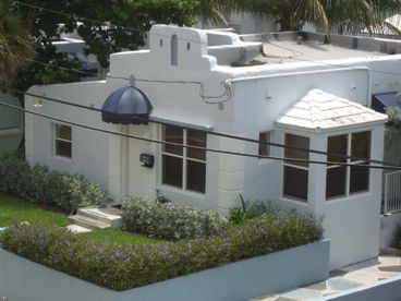A charming old-spanish style/art deco 2 bedroom, 2 bathroom single story cottage located just steps away from the beautiful Hollywood Beach and Boardwalk. You can see the ocean from the living room and enjoy the constant refreshing ocean breeze in this cottage that has been totally updated and remodeled from its gourmet kitchen, hard wood floors, cable TV, internet access and more. There is a pull out sofa in the living room so that the cottage can easily accommodate 6 people. There is an assigned private parking space right beside the cottage. In the back, visitors may enjoy BBQ facilities in a courtyard garden adjacent to the heated swimming pool.