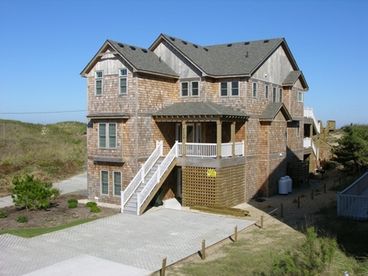 Amazing musical getaway! Spectacular oceanfront in Nags Head has panoramic beach views and a Chickering Grand Piano in the Expansive Great Room. Snuggle up by the fire, sing and watch the waves. Excellent Acoustics, Perfect place to gather friends, family, to play string quartets or chamber ensembles. Luxurious 8 master suites, each with private bath (5 king, 1 queen, 4 bunk twins, 1 double w/bunk and 2 half baths. Gourmet kitchen, well-equipped with all stainless steel appliances and granite counters. Especially recommended for people with environmental sensitivities, this home was Constructed and Furnished with an emphasis on Non-toxic, Natural Materials, including solid wood furniture, special order mattresses, cotton mattress pads and quilts, nylon shower curtains, low VOC paint and many other details. There's even an elevator. Low off-season rates.