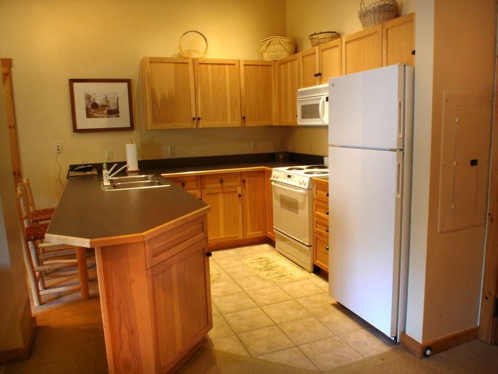 maple cabinets and is set up in a functional pattern. The breakfast