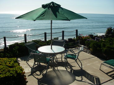 The Pacific Ocean is your backyard from this lovely, contemporary 2 bedroom, 2 bath townhome on the ocean in charming Encinitas. Peaceful, romantic, exhilarating - this will be a vacation you never forget. Relax and breathe the warm, rejuvenating sea air from the private oceanfront patio. Watch the dolphins and surfers play in the waves below and perhaps see the migrating humpback whales. Take off your shoes and soak in the breathtaking 180 degree ocean views. Enjoy your morning coffee as the stillness is only interrupted by seabirds diving for their breakfast. Prepare the barbeque while having a glass of wine as a spectacular sunset unfolds in front of your eyes - a photographer and artist's delight. Great surfing for short and long-boarders, boogie boarding, and miles of sandy beaches to explore. Bring your running shoes and bikes and don't forget a good book. "We loved the home, as did our local friends - they all wanted to come stay with us. It was the best, most relaxing vacation we've ever had" (comments from a recent guest). This beautifully furnished townhome is located between Moonlight Beach and Stone Steps, and is a short walk to the restaurants and boutiques of enchanting Encinitas. Encinitas is located 25 miles north of San Diego and 95 miles south of Los Angeles. Nearby attractions include Del Mar Horse Racing, public golf like the championship length Encinitas Ranch Golf Course, and the art shops of the Cedros Design District. The home features hardwood floors, a fully equipped kitchen with granite counters, a master bedroom overlooking the ocean, wireless internet , and HD tv.