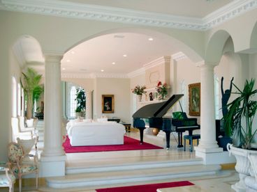 This spectacular mansion in Bel-Air, California comprises approximately 13,000 square feet in 25 rooms of architectural splendor. From the sensational circular limestone staircase, the 32 foot high circular foyer and other high ceilings throughout, the 25' Tuscan columns, the 5 fireplaces, sweeping views of canyons and downtown Los Angeles, this architectural masterpiece is a cinematographer's dream. A master of disguise, this great venue has been dressed up as a hotel, a restaurant, a theater, the Oval Office, a villa in the hills of Tuscany, a church and many other settings in the numerous magazine shoots, commercials, videos and feature films in which it has starred. This home has so many views, aspects, balconies and other unique architectural features it can virtually be whatever you need it to be---it has even been a setting for green screen. Additionally, with its five large bedrooms and nine bathrooms, and other rooms that can double as bedrooms, this house is also perfect as the setting for a reality show. This mansion is not to be missed, it, alone may fulfill all of your filming, event, and vacation rental needs. Event pricing will be higher.