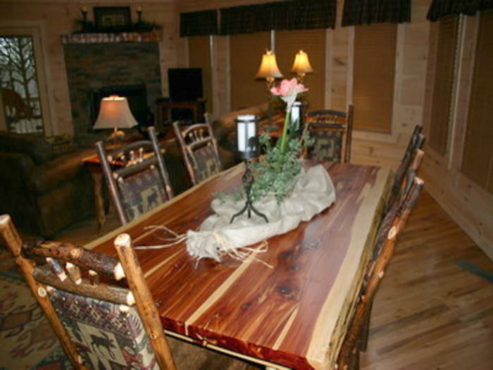 Get back to nature in the Blue Ridge Mountains! Blue Ridge Nature Lodge is located just minutes from town in one of the most desireable areas of our town, The Aska Adventure Area! You are just minutes away from hiking, biking, canoeing, tubing, Toccoa River and Lake Blue Ridge. This new cabin will take your breath as you drive up to an all glass prow front! Once you enter you will not believe your eyes! The inside is even more beautiful! It was professionally decorated with top of the line rustic furnishings mostly handcrafted locally. You will enter the main level into the greatroom which has two walls of windows looking out at mountains that look so close you'll feel like you can reach out and touch them! The Greatroom has a stone fireplace with gas logs, a dining table for six and an upgraded kitchen. The bedroom on this level has a massive king bed with luxury bedding and a small TV and full bath. Just outside this level you have a wrap around deck and screened porch with a stone wood burning fireplace! You and your family can grill out with the gas grill and sit on the screened porch with the fire blazing and just enjoy life! Back Inside.... Just up the staircase you will find a small desk just in case you need to do a little work. The master bedroom is on the upper level. It features a huge king bed with luxury bedding, a TV , a private covered porch with two rockers, and a master bath with a jetted garden tub, double vanities & a beautiful tiled shower. Now to the bottom level.... Once you walk downstairs you are greeted by yet another stone fireplace with gas logs! The family room on this level has a sleeper sofa, pool table, a wet bar, and a sitting area with a large flat screen high def TV. The hot tub is just outside. The 3rd bedroom has a queen bed with gorgeous bedding, a TV with a DVD and a full bath. Blue Ridge Nature Lodge is certainly one cabin that you will not forget. It has all the amenities you are looking for and much more!