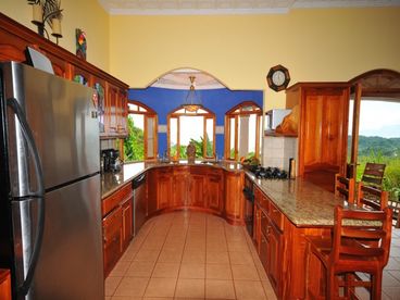 Spend in the lap of luxury in this spanish-style villa with spectacular views of the sea and mountain rainforest. Enjoy the sights and sounds of the surf in this open-air home with great breezes. This beautiful home of unique character boasts ocean-view queen bedrooms, a stunning new granite kitchen, 2.5 baths, and tiled swimming pool. The home is just 500 feet up from the coastal highway offers easy access to all local tours and amenities.