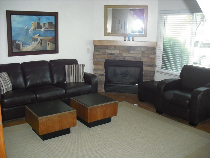 Oceanside California Beach Condo-Vacation Rental has 2 Bedrooms, 2 baths, sleeps 6 (8 max) full kitchen, rock fireplace, 2 TV's with DVD players, high speed internet, courtyard with shared gas grills, only steps to the beach, come enjoy the beach, supplied with beach toys, beach chairs, beach umbrella, boggie boards, etc. This condo is a perfect location for any vacationing family. Only 45 minutes to Disneyland, 30 minutes to Seaworld, and Legoland is only 10 minutes away. No Smoking & No Pets Rentals are from Saturday to Saturday. Summer rates are $1200 + $100 cleaning fee + tax per week, Spring & Fall @ $600 + $100 cleaning fee + tax Winter (Nov-Feb) @ $500 + $100 cleaning fee + tax except Christmas week which is $700 + cleaning & tax. We also require a $200 fully refundable damage deposit Monthly rentals are available during the winter at $1600