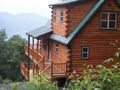 Near Bryson City – Beautiful new log cabin. Be among the first to enjoy this luxury getaway. Perched high on a secluded mountain side, “Sunrise above the Clouds” invites you to relax with beautiful scenery and peaceful surroundings. This three level cabin offers many luxuries, tasteful decor and a comfortable atmosphere. Amenities include granite countertops throughout, two wide screen TVs, king and queen-size beds with high-end pillow top mattresses, two single beds, three full baths: the master bathroom has a double vanity and a Jacuzzi tub. With its dining and lounging areas, luxury hot tub, the multilevel deck is the perfect place to unwind, catch up on conversation and absorb the views and sounds of the mountains.
