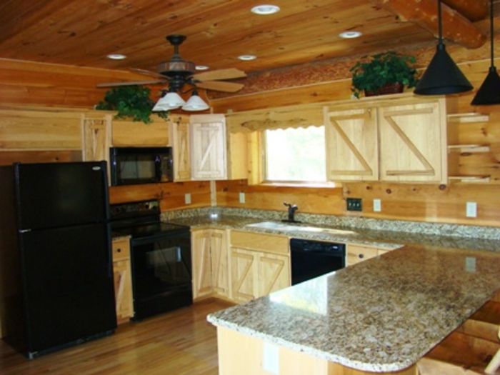 With rustic logs and a country quilt, the Master Bedroom has a King