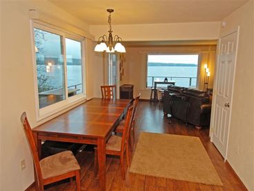 Looking for a relaxing retreat? Then, book a vacation at our GetAway Beach House on beautiful Hood Canal. You’ll enjoy the fresh country air and a natural environment -- just two of the many delights at this wonderful home. With ten acres of privacy surrounded by majestic Douglas fir trees and spectacular Hood Canal beachfront you’ll find your cares drifting away. This newly remodeled home has 2 bedrooms & 2 baths and will accommodate up to 6 - 8 people. Living Room This home is ideal for entertaining with its elegant interiors accented with a warm color palette. A feeling of warmth and comfort awaits you as you gather together to share family pastimes and future dreams. The gas stove will provide the backdrop of relaxation as you gaze upon the Hood Canal. Kitchen & Dining Room The galley kitchen fuels one’s passion for cooking as it opens to the dining room, living room and entertainment-sized deck. Dine on your bounty or other delicious cuisine; dining table seats 6 and additional seating at the cocktail table seats 4. Family Room Enjoy more Hood Canal views from the upstairs family room and lanai. This cozy space has a Queen sofa bed, TV/DVD/Cable. Try your hand at a game of checkers or just sit back and relax with a good book.
