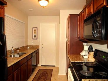 The townhome is newly decorated with comfortable, new furniture. Fully equipped kitchen with granite counterops, laundry, dining room, living room with flat screen TV and DVD player, WIFI, garage, upstairs has two separate bedrooms with two full walk in bathrooms and walk in closets. Master bedroom has large flat screen TV too.