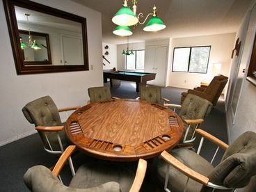 This 4500 square foot, three level home boasts 7 bedrooms, 4 baths, multiple living rooms, multiple refrigerators, a game room complete with a POOL TABLE and a POKER TABLE. One of the bedrooms is perfect for a kids rooms with 4 twins, their own little getaway! This is a perfect getaway for all seasons! Short drive to the slopes and WALK TO LAKE and MARINA!! Close to the Village. This spacious home can be separated between 2 families - there are 2 ktichens and plenty of space to spend time alone and together! The perfect place to unwind and have some fun with friends and family! Features: BOAT PARKING, POOL TABLE, Gameroom, Fully Stocked Linens, Towels and Kitchen, 2 Living Spaces, Large Spacious rooms, Walk to Lake and Marina, Peek Lake View, Propane Gas BBQ, Large Deck, Flat Yard, Dishwasher, Washer, Dryer and so much more! Bed Arrangements: Bedroom 1: King Bed (Master - Main Level) Bedroom 2: 1 Queen Bed (Main Level) Bedroom 3: 1 Queen Bed (Main Level) Bedroom 4: 1 Queen Bed (Main Level) Bedroom 5: 1 Queen Bed (Master - Lower Level) Bedroom 6: 2 Queen Beds (Lower Level) Bedroom 7: 4 Twins (Upper Level)