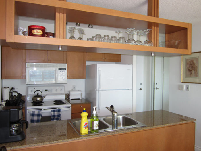 Located in the heart of Downtown Toronto Entertainment and Waterfront District, three minutes walk to Lake Short (Lake Ontario), 1 minutes walk from Rogers Centre, CN Tower, Metro Convention Centre, and 30 second walk to public transit. Why stay in a one-room hotel when you can have the entire upscale condo all to yourself with a 25 meter swimming pool, whirlpool, spa, sauna and gyms... and a in-suite 42' HDTV Home Theater 5.1 with High Definition Channels, wireless internet, and complimentary premium regular & decaffeinated coffee, tea, towel service, soaps and cookware! Our suites are upscale, modern & safe with 24 hours security, we are located at heart of Downtown Toronto Entertainment and Waterfront District... No need to drive, three minutes walk to Lake Short (Lake Ontario), half minutes walk from Rogers Centre, CN Tower, Metro Convention Centre, and 30 second walk to public transit. There is a super market right right downstairs that open from 7 am to midnight.