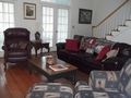The first floor has a spacious fully furnished kitchen. The den includes beautiful floors, a new TV, gas fireplace, comfortable seating, and ceiling fan. French doors lead out to our screened-in back porch. Upstairs - King bed and twin bed, sofa twin pull-out; Queen bed and twin bed; washer and dryer, completely furnished and maintenance free living during your stay. NO DOGS, please.