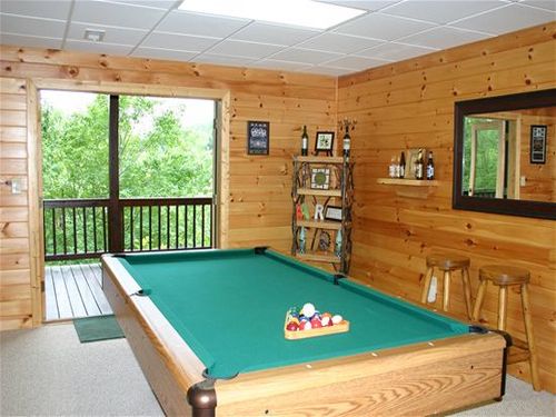 Skybound is the perfect place to make great vacation memories! The main level features a cozy living room with a stone gas log fireplace and French doors that lead out to the screened porch with comfortable seating to sit and enjoy the great mountain view and a large ping pong table that is great for all ages. Also on the main level is the fully equipped kitchen and dining area with seating for six and one standard bathroom. The main level bedroom has a queen bed and a television. The cabins upper level features the master bedroom with a queen bed, a television with DVD player and private access to a standard bathroom. The lower level of the cabin has one bedroom with a queen bed, one standard bathroom, a laundry room with a washing machine and dryer and a nice game room with a standard size pool table, a living area with a gas log fireplace and television with DVD player and French doors leading out to the lower porch where the bubbling hot tub awaits! Not only is Skybound located just minutes from historic downtown Blue Ridge, it also has paved access and is pet friendly!