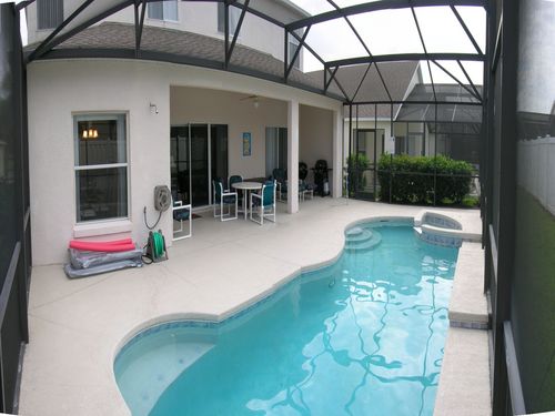 A fabulous 6 bedroom, 3.5 bathroom Orlando Florida vacation home that sleeps up to 14. This luxurious 2-story house offers over 2800 sq. ft. of living space that has been professionally designed and furnished to the highest standard. The home includes a large heated pool and spa that are south facing, a games room with pool table, dartboard and foosball, TVs, DVD players, games console, Cable TV, free Internet connection for use with your laptop, air conditioning, luxurious furnishings and every amenity you would expect from a top class Villa. The main living areas are extensive and include a formal lounge and dining room which are great for special occasions. The family area has a large (46) TV with Cable. There is a DVD player and a selection of DVDs. The fully equipped Kitchen is also spacious and has all the amenities you would expect from a Villa of this standard. There is a 'nook' off the Kitchen area which overlooks the pool and spa and is great for informal dining. The utility room has a washing machine and tumble dryer and the pantry area offers shelving for storage. The Games Room is also downstairs and is a great room for the whole family to have fun in. The 6 Bedrooms are spacious. The 2 Master Suites are huge both with king sized beds, The other two upstairs bedrooms have two single beds in one and a Full in the other. There are 2 bedroom downstairs with a Queen bed and two single beds and are very well suited to people who can't get upstairs easily. Outside, there is a lovely pool.. There is optional pool heating available. The spa offers a great place to relax with a drink at the end of a busy day. There is a lanai at the back of the house which overlooks the pool, spa and which offers respite from the wonderful Florida sun. The whole pool area is south facing which is a huge bonus for those who love all day sunshine. There is plentiful outdoor furniture including sun loungers and tables and chairs.
