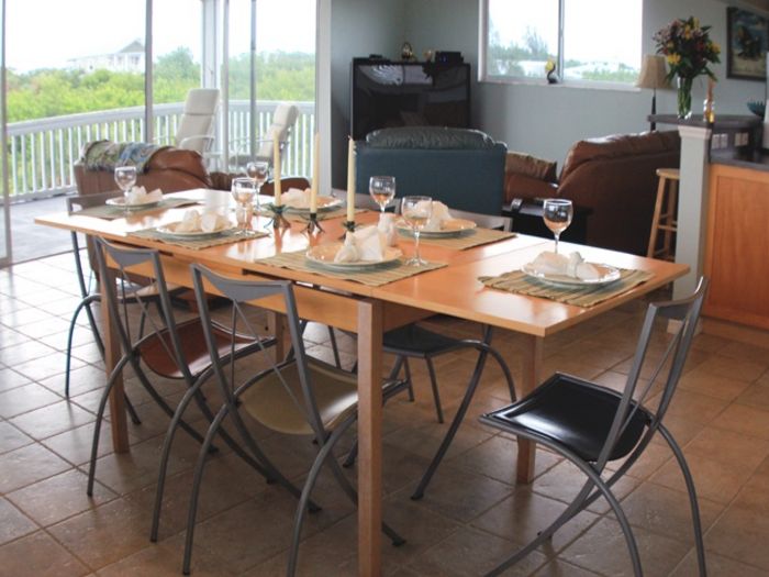 Enjoy your meals at the bar or around the expandable dinner table.