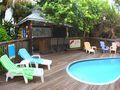 perfect for sunning or entertaining. A tiki bar with sink, fridge and