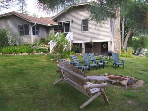 We invite you to enjoy this breathtaking, unobstructed view of beautiful Dam Lake. The Lodge is on a grassy slope leading right to the shore of Dam Lake which is on the Sugar Camp Chain of 5 lakes. The chain contains 2,300 acres of water for your enjoyment. The five lake chain is known for its abundant Musky, Walleye, Small and Large Mouth Bass and a large assortment of pan fish.We invite you to enjoy this breathtaking, unobstructed view of beautiful Dam Lake. The Lodge was the homestead of the original owners of the Historic Pike Bay Resort. No longer a resort, The spacious Lodge has been thoroughly modernized while maintaining its original "north woods charm." The large living room is knotty pine harvested from the surrounding woods. The fireplace was handmade from multi colored river rock, hand picked from the lake bottom years ago. The two large picture windows on each side of the fireplace face south giving you an outstanding view of the lake. Air conditioned,direct tv (HD) and wi-fi for indoor comfort.The three bedrooms of the Lodge include: A bright large master bedroom featuring a king size bed, dresser, desk, nightstands and two closets. Attached is a full bath with a Jacuzzi tub and separate shower. The second bedroom is lake side queen dresser and 2 night stands. The third bedroom can sleep six. It has two bunk beds with the full size mattresses on the bottoms and singles on top. and 1 large dresser The second full size bathroom has a tub and shower can be accessed directly from this bedroom or from the kitchen. Our large modern kitchen contains a full size refrigerator and gas stove, dishwasher, large double sink and microwave. All dishes, pots, pans, glasses, utensils and coffee maker are furnished, Other are rentals available.