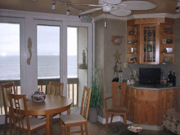 Oceanfront Efficiency Corner Unit. Updated appliances and fixtures very comfortable. Accented lighting beautifully decorated. Kitchen, Microwave, 1 Bath, Oceanfront Balcony, Side Window Looks South Down Boardwalk, Outdoor Pool, TV, Coin Operated Laundry on Premises,