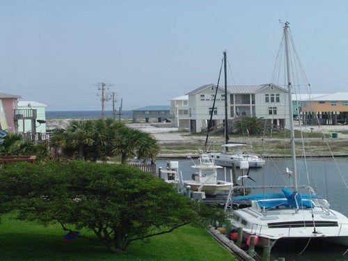 This unit is located on a canal with access to the Intercoastal waterway and near the pier and Juana's Pagoda. There are 3 bedrooms and 2 1/2 baths in this 1200sq.ft. unit. Two of the bedrooms are on the upper level and one bedroom is on the lower level with the kitchen, dining and living area. There is a screened deck off the living/dining area, a sun deck off the master bedroom with great water views, and a dock and deck on the ground level. The unit has a queen bed in the master bedroom, 2 twin beds in the second bedroom and a futon that makes a full bed in the downstairs bedroom. For those who want to escape the high rise condo scene and desire quick access to boating and the water, this is an excellent choice.