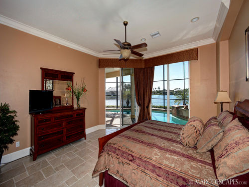 upper level master suite features access to the balcony for bay views