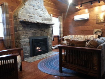 Situated high on a cliff overlooking a beautiful trout stream, this cottage has many luxury amenities is in located in the heart of the Laurel Highlands, just minutes to resorts and other activities: 5 minutes to ski lift; walk to restaurant and gourmet shop, Short walk or cross country ski to neighboring state park. This mountain cottage is the former home of the son of the owner and manager of the neighboring ski resort. It has been completely renovated for the 2014 season, and practically everything is new, while retaining lots of mountain charm. The living room features a 2 story stone fireplace with tongue and groove atrium ceiling, skylights, and 2 mission style sofas, recliner, and flat screen TV with Netflix. The new kitchen features full sized stainless steel appliances including a dishwasher, smooth top oven, built-in microwave, and Cusineart coffee maker. A butcher block kitchen island seats 2 for informal dining, while the adjoining dining area with handmade rustic lighting fixtures seats 6. The dining area has french doors which open up to a covered dining area with table for seasonal outdoor dining. There are 3 bedrooms, including a large master bedroom with built in window seat and high-end, queen Sleep Number mattress, with adjustable firmness to match your exact preference. Each of the 2 additional bedrooms sleep 2, with plenty of closet and dresser space and a dedicated half bath. All plumbing and heating systems are new, with new bathroom fixtures, an efficient central heat pump for both heating and cooling, individual room temperature controls. On a cold winters night, the stone fireplace with low maintenance gas insert provides for additional heat and ambiance. A big attraction of this property is the access to the outdoors. A large wrap around deck provides outdoor living space, and sits high above the bubbling trout stream in the valley below. The deck is built around a hemlock tree, which provides for pleasant shade. Huge rock outcroppings, mountain laurel, and ferns surround the property. Private trails provide access to a mountain spring, and the stream, available for fishing (class 1 trout stream). The property is private, and backs to hundreds of acres of undeveloped mountain resort property. A trail leads directly to the adjoining state park, with lake, sand beach, and numerous hiking and picni