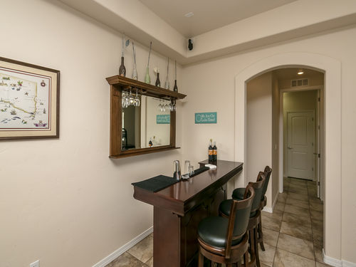 Custom Santa Fe home Built in 2015, 1800+ square feet with 10 foot high ceilings! This 3 Bedroom 2 bath has an open floor plan which incorporates the living room, kitchen, and dining room. Custom bar inside the entertaining room with a HD 70 inch wall mounted smart tv, offering Airplay wireless from an iphone (or usb) on a professional sound system that rocks the whole house. Comfortable sectional couch will seat your whole group! Cable and high speed WiFi provided. Tile throughout the house except for bedroom 2 and 3. The kitchen features granite counters and lots of beautiful custom cabinets. The kitchen offers a keurig coffee maker (bring your favorite coffee pods), toaster, and a magic bullet blender. All appliances are new stainless steel. The laundry room is equipped with new over sized top load washer and dryer and detergent. On one end of the house is the master bedroom with a pillow-top king size bed, 56 inch flat screen HD TV and beautiful french doors that open up to the front of the house. Perfect for watching amazing sunsets over the lake. Master bathroom includes a huge walk in closet, over sized walk in shower with seat, and dual sinks. Bedroom 2 has a comfortable pillow-top queen bed with a slider door to the backyard. Over sized dresser and full size closet with a nightstand. Bedroom 3 is the bunk bedroom with 2 sets of adult full over full. Top bunks have full 6 inch memory foam mattresses, bottom bunks are 8 inch full pillow-top mattress. Extremely comfortable for adults and kids. Full size mirrored closet. If you need extra sleeping space I have provided a queen inflatable as well as extra bedding. Garage has 12 foot high doors and is 35 feet deep. Property is undeveloped in the backyard for now. Plenty of room for several boats or RV's on this property.