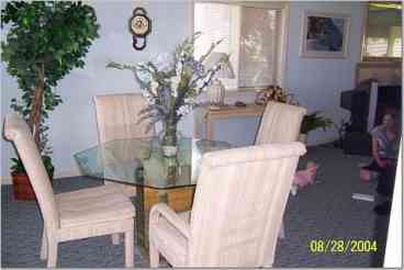 This non-smoking, ground floor, end-of-building condo has new microfiber sofas and chairs; new bed sets in both bedrooms; new carpet and paint throughout the unit; new tile in entry way, kitchen and bathrooms; and new patio furniture, silk plants and flower arrangements! New 32" TV, VCR and DVD player in living room. Kitchen is well-equipped, with dishwasher, disposal, coffee maker, trash compactor and all cooking items and utensils. Laundry facilities include washer, dryer, iron, and ironing board. Master suite has 27" cable TV, huge closet, private bathroom with large vanity, twin basins, and a garden tub with shower. Guest bedroom has a new queen bed and a huge closet. In all, over 1300 square feet of luxury! This unit has the very best view in St. George!! A 180 degree panorama looking north over Green Valley, all the way to Pine Valley Mountain. Great for having breakfast on the patio at sunrise, or for watching the beautiful sunsets over the mountains to the northwest.