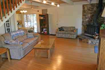 Comfortable home in one of South Lake Tahoe's better areas for a carefree, relaxing getaway. Located in the Country Club Estates neighborhood, this home is convenient to many of Lake Tahoe's best destinations. Relax in the new 6 person Hot Springs hot tub, rack up for a game of pool or darts in the game room, or just kick back next the large open wood burning stove. The open floorplan features a large living room with brand new gorgeous hardwood floors and exposed wood beam ceiling that flows into the kitchen. The large fenced backyard is lined with trees that add privacy and hide most of the surrounding houses. The porches and decks feature filtered mountain views. The house is set back from the quite street for extra privacy. Take a photo tour by: CLICKING HERE [1]